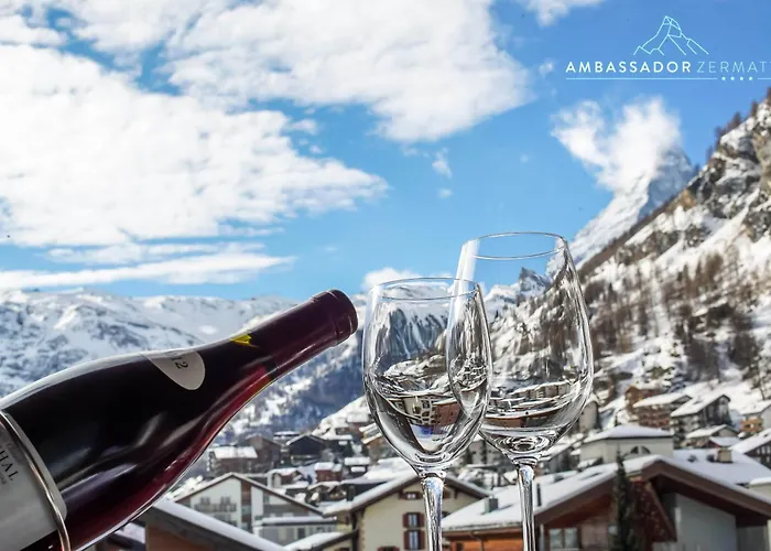 A 4 csillagos Hotel Ambassador Zermatt vendégei élvezhetik a Stellisee gyors elérhetőségét, amely 5 percnyi sétára található. A Hegymászók temetője 750 méterre fekszik a Zermatt városi hoteltől, ahol egy à la carte restaurant étterem várja a vendégeket internationale ételekkel.
